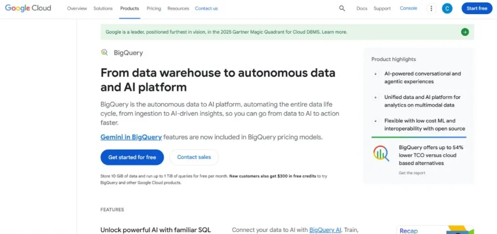 | Google BigQuery | 4.7/5 | Serverless architecture with superior performance |